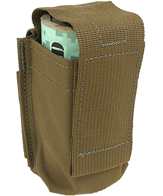 The BattleField Smoke Grenade Pouch is a PALS/MOLLE compatible pouch designed to carry one BattleField Smoke Grenade. These pouches feature Mil-Spec webbing, reinforced (bar tack) stitching, and 1000 Denier Nylon fabric for excellent durability and light weight. The modular design allows for the quick addition or removal of extra pouches to accommodate various game scenarios and smoke grenade load-outs. The BFG Pouch is MADE IN AMERICA and Berry compliant. (Price is per pouch, does not include grenade)